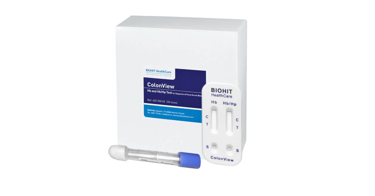 The BIOHIT ColonView® Quick Test is a rapid and qualitative dual immunochromatographic lateral flow test designed for the visual and automated detection of human haemoglobin (Hb) and the haemoglobin/haptoglobin complex (Hb/Hp) in stool samples. Because the Hb/Hp complex is notably resistant to acid and proteolytic degradation, this occult blood marker can be identified even after an extended journey through the digestive system, thus increasing the likelihood of detecting larger intestinal polyps and proximal colorectal cancers.