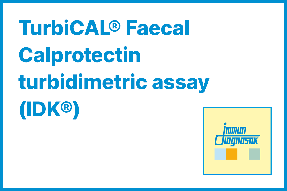 The IDK TurbiCAL is a particle enhanced turbidimetric immunoassay (PETIA) that uses monoclonal antibodies for the determination of human calprotectin (MRP 8/14; S100A8/A9) in stool samples. This assay is intended for the timely differential diagnosis between inflammatory bowel disease (IBD) and irritable bowel syndrome (IBS), and to monitor intestinal inflammation and disease activity in IBD patients. It helps diagnose bowel inflammation quickly, minimise bowel damage and expedite treatment.