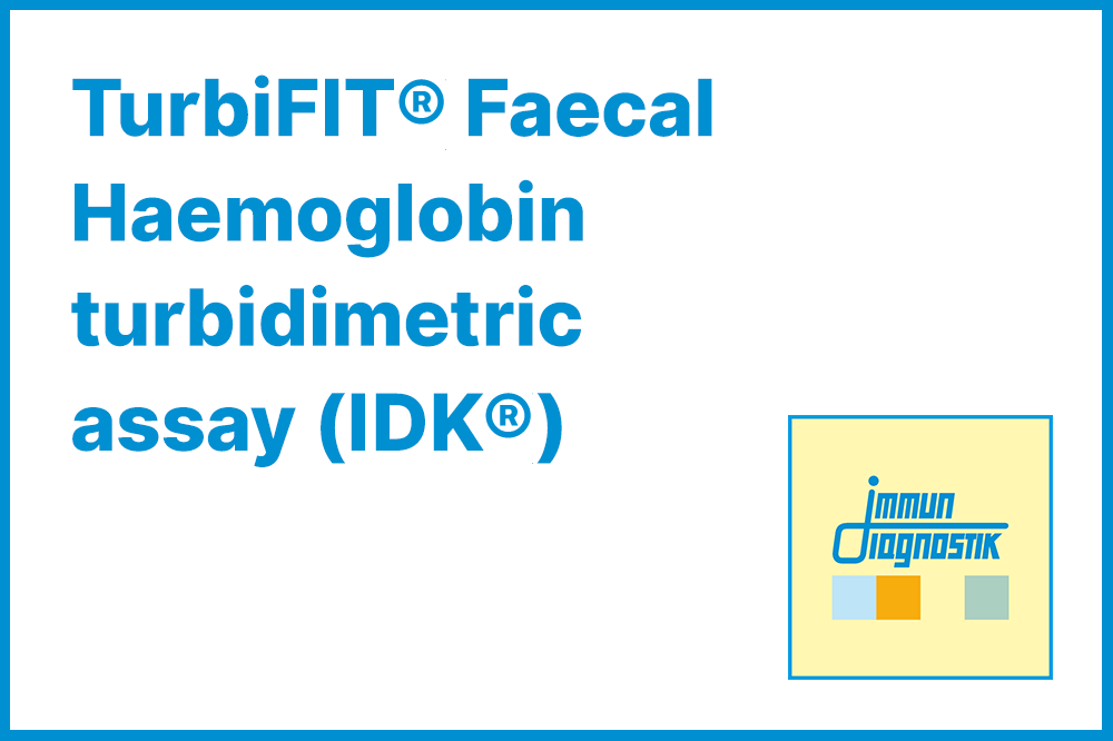 The IDK TurbiFIT employs a particle-enhanced turbidimetric immunoassay (PETIA) methodology, utilising polyclonal antibodies to accurately quantify human haemoglobin levels in stool samples. Also known as a FIT test this assay serves a dual purpose: it acts as a preliminary screening tool for the detection of faecal occult blood, aiding in the early identification of colorectal cancer in asymptomatic individuals, and it also functions as a diagnostic test for potential bowel diseases in patients presenting with lower abdominal symptoms.
