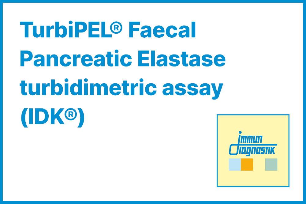 The IDK TurbiPEL is a particle enhanced turbidimetric immunoassay (PETIA) that uses monoclonal antibodies for the determination of human pancreatic elastase in stool samples. The assay can be used to identify exocrine pancreatic insufficiency (EPI) and to monitor the levels of digestive enzymes that these patients produce.